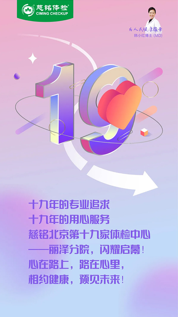 為進(jìn)一步響應(yīng)健康中國戰(zhàn)略,提升群眾健康意識,慈銘體檢發(fā)揮醫(yī)療專業(yè)優(yōu)勢,在北京地區(qū)開展“奮斗百年路,健康中國行”系列健康公益活動,慈銘體檢各家分院積極行動起來,助力疾病預(yù)防、健康教育和促進(jìn)工作,送健康到群眾身邊!...